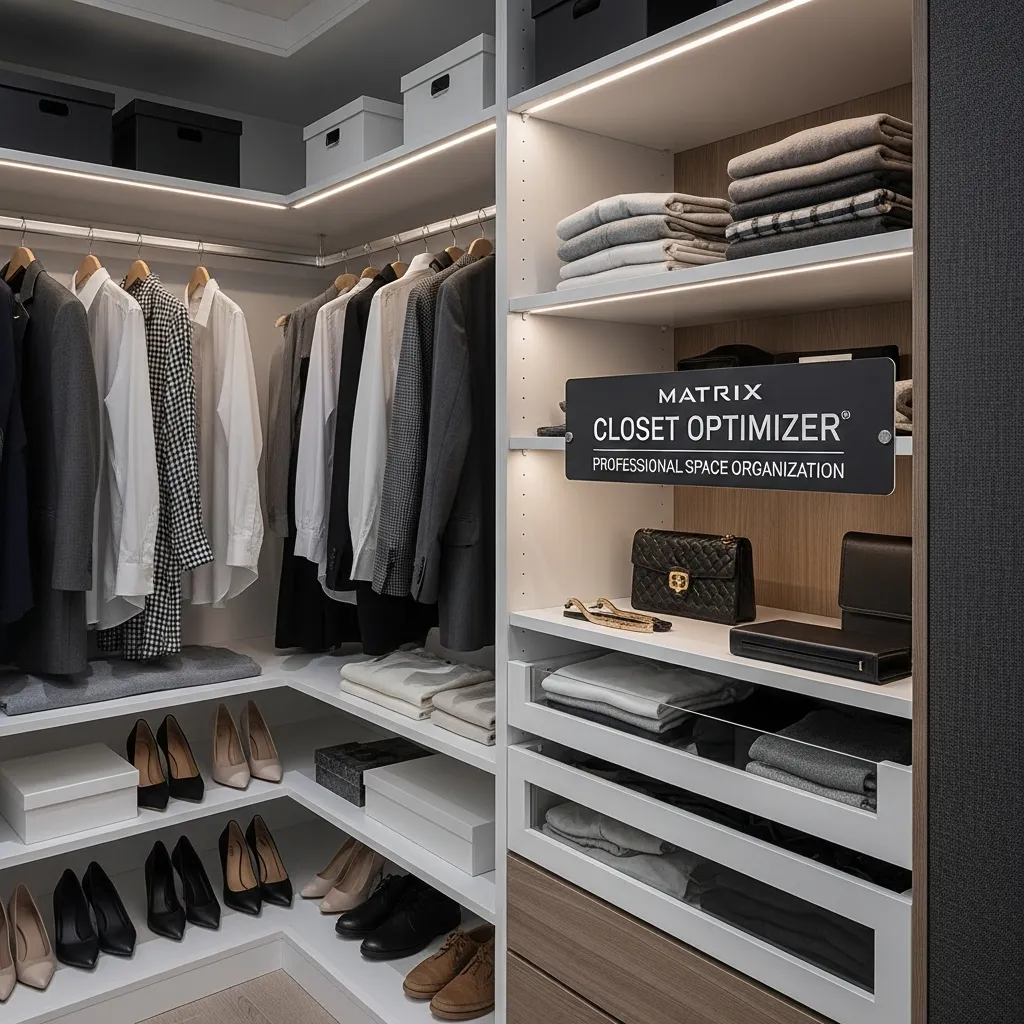 Precision-engineered closet transformation system with telescopic shelving, automated lighting integration, and multi-tier hanging solutions. Perfect for maximizing wardrobe accessibility and organization efficiency.